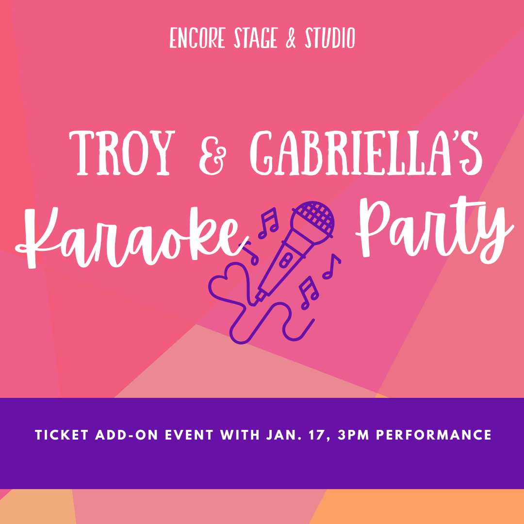 Before the curtain rises, step into the spotlight at Troy and Gabriella’s Karaoke Party! Join the cast and crew onstage for an unforgettable pre-show experience where the audience becomes part of the East High fun. Sing along to your favorite High School Musical and Disney Y2K hits, and cheer for your friends as you warm up your vocal cords with the Wildcats! Perfect for all ages, this interactive karaoke party will ring in the new year to "the start of something new!"